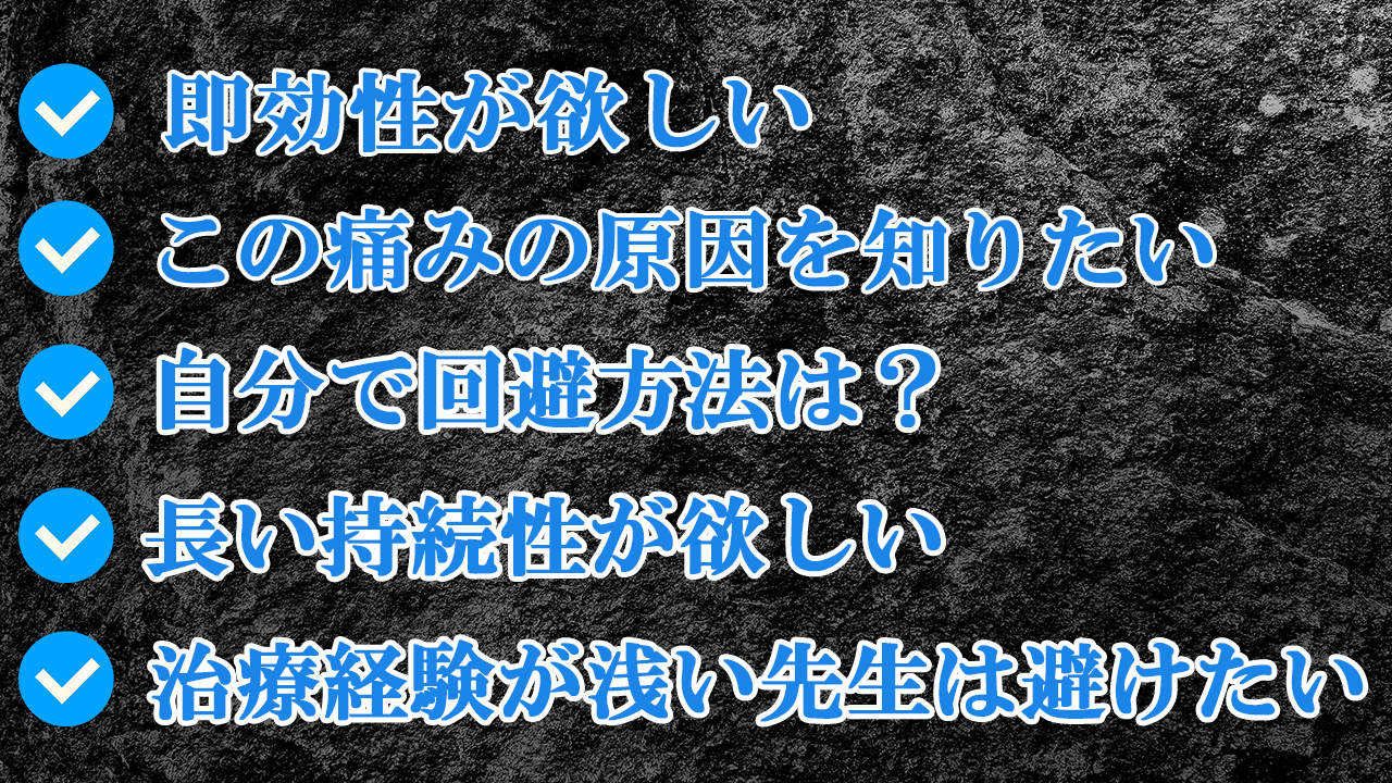 | 痛みを取りたい (即効性は?) | × | 〇 | ◎ |