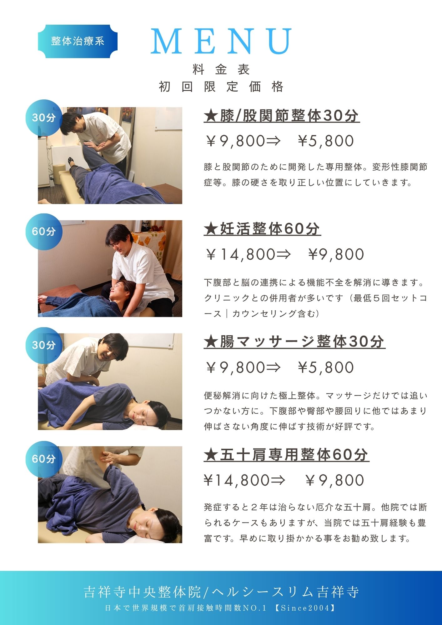 日本全国探しても首肩だけに60分を費やす整体院はめったに見つからないかと思います。それがココ吉祥寺にあるのです。(シンプル型整体は廃止致しました)