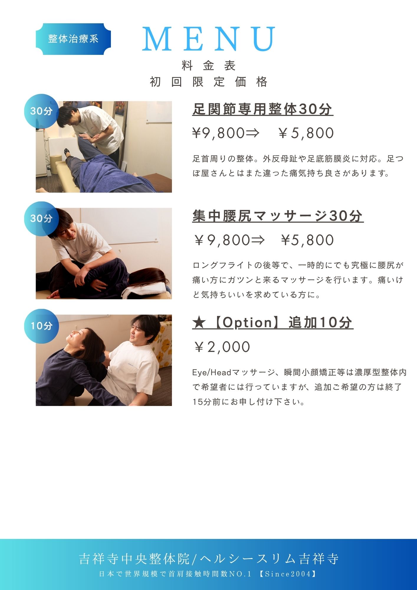 やっている事は濃厚型整体とほぼ同じ。首や頭に掛ける時間を増やしています。